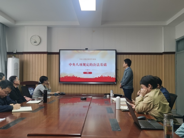 李猛同志讲授微党课的主题是《中央八项规定的公法基础》。李猛同志深耕中央八项规定的法治内核,系统阐释八项规定的公法基础。他梳理了社会契约论的演进脉络,揭示控权论对会议精简、用车规范等具体规定的理论支撑。结合我国《宪法》第14条、第27条、第33条,阐明中央八项规定对宪法的具体落实;援引我国《行政法》程序正当原则、高效便民原则和权责一致原则,解析精简会议、规范出访等规定如何提升治理效能;以监察法聚焦、“放管服”改革和营商环境法治化为样本,展现作风治理、政府职能和政商关系规范上的纵深突破。