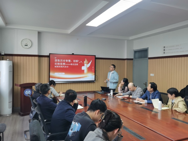 李康同志讲授微党课的主题是《汲取历史智慧,创新纪检监察——御史监察制度的现代启示》。李康同志指出御史监察制度作为中华法系的制度瑰宝,其制度精髓在于构建了权力制约的东方范式。现代监察法的完善,应当取其精华、去其糟粕,立足现代法治精神进行创造性转化。将皇权依附性转化为法律至上原则,将人治色彩转化为程序正义理念,将封闭式监督转化为阳光监察机制。