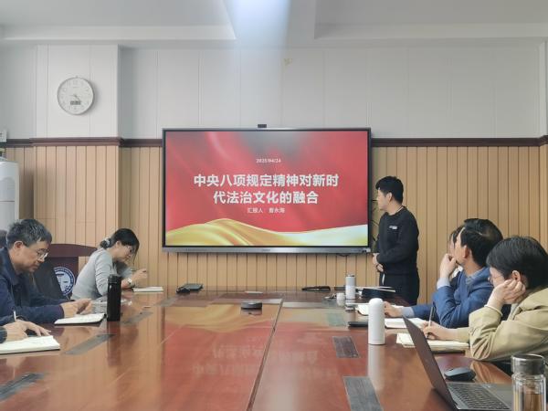 为深入贯彻中央八项规定精神学习教育,法学系党支部立足自身专业优势、邀请相关学科领域的党员教师结合研究专长深入学习中央八项规定精神,打造了“深入贯彻中央八项规定精神,以法治思维和法治方法加强作风建设”的系列微党课。首批微党课六将于4月24日进行专题授课学习,法学系全体教师、学院党委书记姚成郡参加学习,专题学习由法学系党支书记康雷闪主持。
