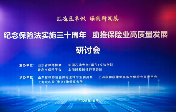 2025年10月17日,“纪念保险法实施三十周年 助推保险业高质量发展”研讨会在青岛隆重召开。本次研讨会由山东省律师协会、青岛市保险学会、上海段和段律师事务所和中国石油大学(华东)必威西汉姆联官网共同主办,山东省律师协会保险法律专业委员会、上海段和段律师事务所保险专业委员会与上海段和段(青岛)律师事务所联合承办。研讨会汇聚了来自保险法领域的知名专家学者、审判业务专家、保险从业者和律师等近200人参加。