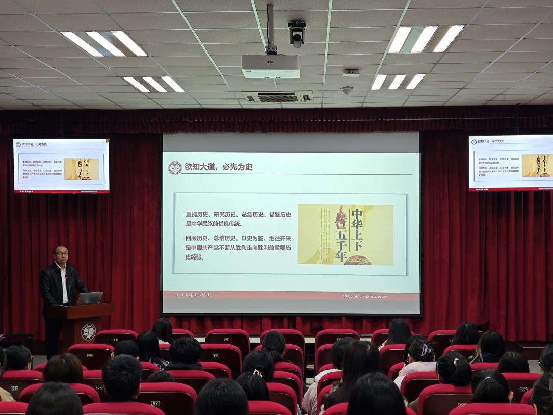 欲知大道,必先为史。陈熙带领学员梳理了党的百年奋斗历程,分析“左”与右的错误倾向,强调了实事求是、与时俱进的重要性。随后,他从形成背景、主要内容、重要意义三方面详细地讲解了1945年4月通过的《关于若干历史问题的决议》、1981年6月通过的《关于建国以来党的若干历史问题的决议》和2021年11月通过的《中共中央关于党的百年奋斗重大成就和历史经验的决议》,指出这三个历史问题《决议》对于党的自我纠错、自我革命、树立正确的党史观等方面的重大意义。最后,陈熙寄语学员“应当在思想上向党靠拢,在行动上向党看齐,为实现中华民族伟大复兴贡献青春力量。”