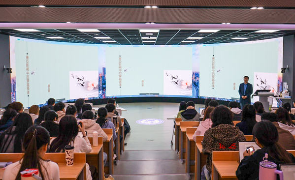 在互动交流环节,聂教授围绕“穿越剧如何在艺术创作中树立正确历史观”这一核心议题,与现场同学们展开深入探讨。他结合当下热门穿越题材作品,从历史真实性、价值导向、文化传承等多个维度进行剖析,引发在场师生的广泛共鸣与深入思考。