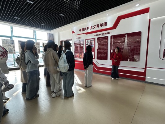 活动现场,班级成员精神抖擞,有序步入团情团史教育基地。在讲解员的带领下,大家依次参观共青团简介、思想引领、校园文化、创新创业、社会实践与志愿服务、学生组织、第二课堂成绩单七大主题展区。一张张泛黄的历史照片、一份份珍贵的文献资料、一个个鲜活的奋斗故事,展现了中国共青团百年风雨兼程的光辉历程,也回顾了我校共青团自1953年建校以来,紧跟党的步伐、扎根能源事业、服务青年成长的奋斗足迹。从北京石油学院的筚路蓝缕,到新时代石大共青团的蓬勃发展,一代代石大青年紧跟团组织的引领,在祖国能源建设、社会服务、科技创新一线书写青春担当,让大家深刻感受到了共青团始终与党同心、与国同行的坚定信念。