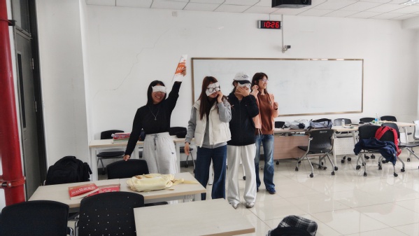 团队协作环节,“超音速传话”与“盲哑人排队”两大挑战接连展开。前者要求小组以非语言方式传递动物、数字等信息,考验创意表达与默契配合;后者通过“盲人”与“哑人”角色互换,让同学们在视听受限情境中学习信任、倾听与换位思考,深刻体会有效沟通与团队配合的重要性。现场秩序井然、参与热烈,不少同学在分享中表示,角色体验让自己更懂得理解与包容他人 。